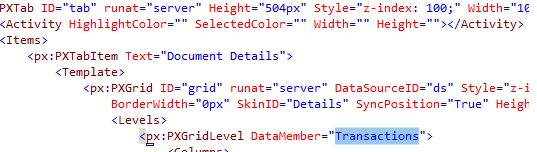 <px:PXGridLevel DataMember="Transactions">