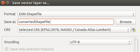 另一种无需使用QGis或类似的方法是再次读取和保存您的Shapefile (有效地转换为所需的格式)。使用OGR,您可以这样做: