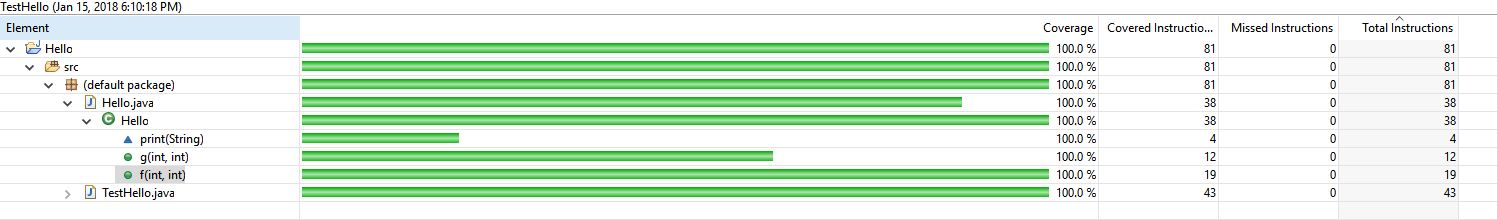 覆盖率窗口中显示的百分比仅指第一个度量(语句覆盖率),所以这就是为什么它都是100%的原因。