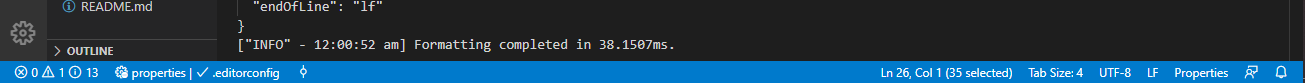 如果您有.editorconfig 文件:,请检查项目目录根目录中是否有一个名为.editorconfig的文件。如果您有该文件,请打开它,并确保您根据需要更改文件中的值。下面给出的代码用于设置indent_style Tab和indent_size 4