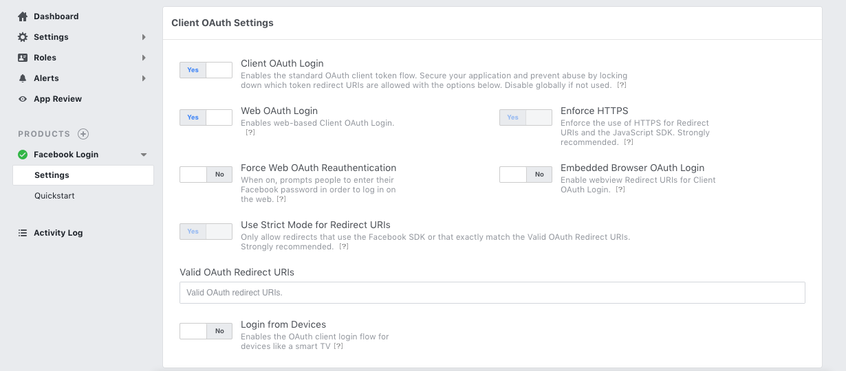 “强制使用HTTPS。此设置要求OAuth重定向,页面使用JavaScript SDK获取访问令牌。截止2018年3月,所有新创建的应用程序都默认启用此设置,您应该计划在2019年3月之前迁移所有现有应用程序,只使用HTTPS URL。大多数主流云应用程序主机为您的应用程序提供免费和自动配置的TLS证书。如果您自己托管应用程序或托管服务默认不提供HTTPS,您可以从”让加密“获得免费的域证书。”