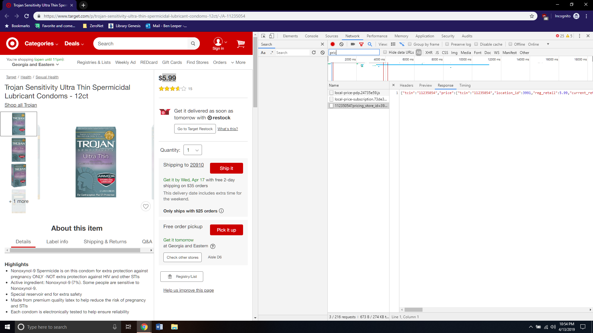 所以,从后面到前面,我相信末尾的32个字符是某种键,类似于用于访问API的键。我认为这个键已经习惯于调用所请求的信息的程序。中间的4个数字是某种商店的标识号。我认为这是用来提取特定商店的定价信息的。然后也许最重要的是,这8个数字朝向那个URL的前面。我认为这8个数字是产品识别信息。有点像个斯库号码。
