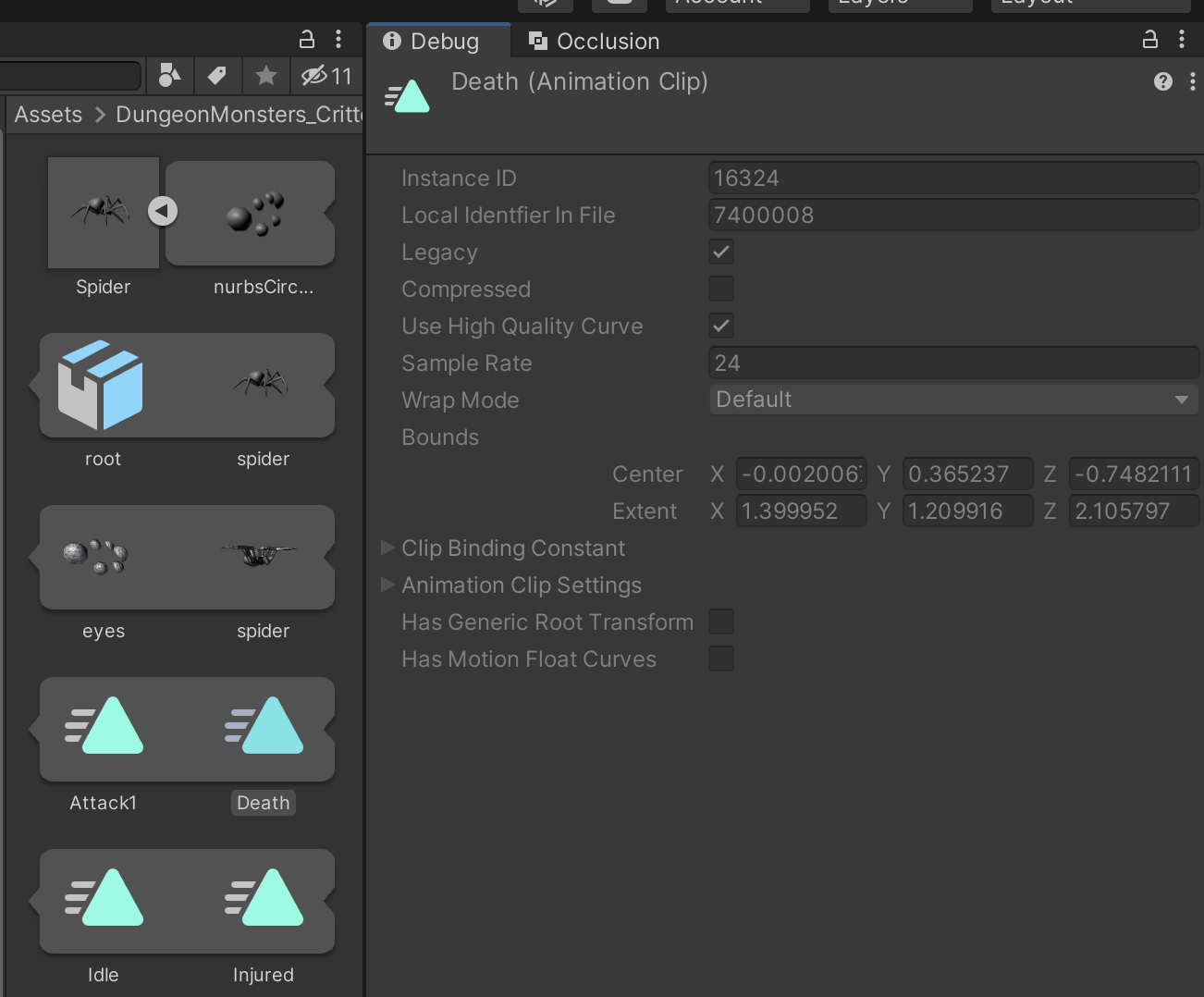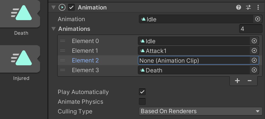 另一件要检查的事情是你的gameObject上的遗留的‘动画’组件,它应该执行动画。在我的例子中,东西被标记为导入动画上的动画遗产,但是当调整导入上的设置时,它放弃了它从实际的“动画”组件中抱怨的动画,所以一旦我添加了它,事情就像预期的那样工作了。