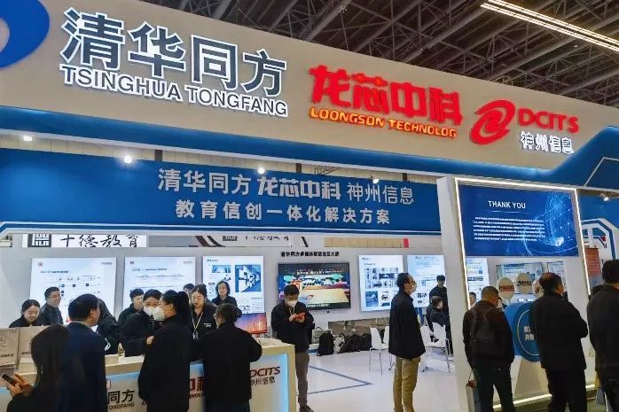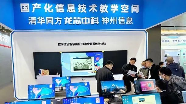 联合展区展示了以“龙芯3A5000芯片+清华同方整机硬件”为技术底座的一体化方案。在此基础上,神州信息提供了集成、适配和迁移等服务,成功整合了统信软件、麒麟软件、金山WPS、永中软件、极域软件和极坐标软件等140余款软件,探索出了一系列适用于教育领域的符合国家信创要求的解决方案。从CPU处理芯片到整机硬件;从基础操作系统软件到教学管理软件办公软件、编程教学软件等等实现了国产自主化,可以满足中小学信息技术基础教学空间中的实际使用需求。