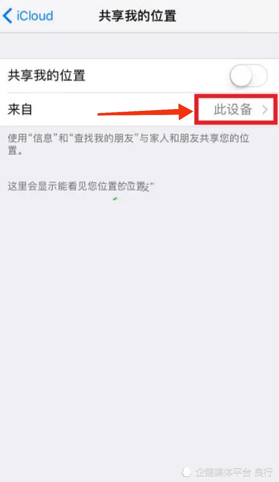 4、到共享我的位置页面后,把来自选项设置成【此设备】即可。