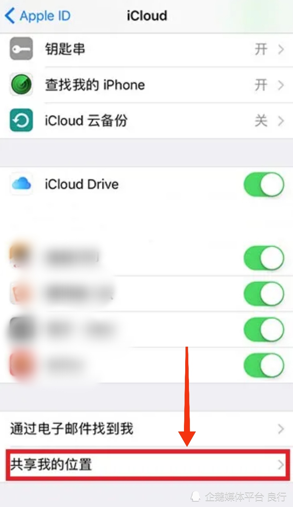 3、到ICIoud页面后,下滑找到【共享我的位置】。