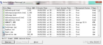 AviraunerasePersonal是一款永久免费的小红伞文件恢复工具。组装后,只需查看更多控制板中删除的所有文件夹。可以恢复记忆卡、USB控制板、硬盘驱动器和其他类似存储芯片中经常删除的软件。