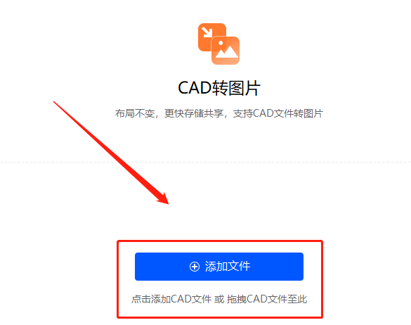 第二步,打开【CAD转图片】功能,点击【添加文件】将需要转换的cad文件直接导入进来;