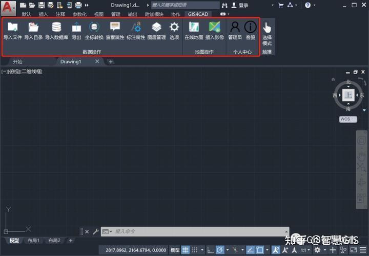 (如何安装 GIS4CAD插件?),安装成功后在AutoCAD菜单栏的最后会多出一组GIS4CAD菜单项。