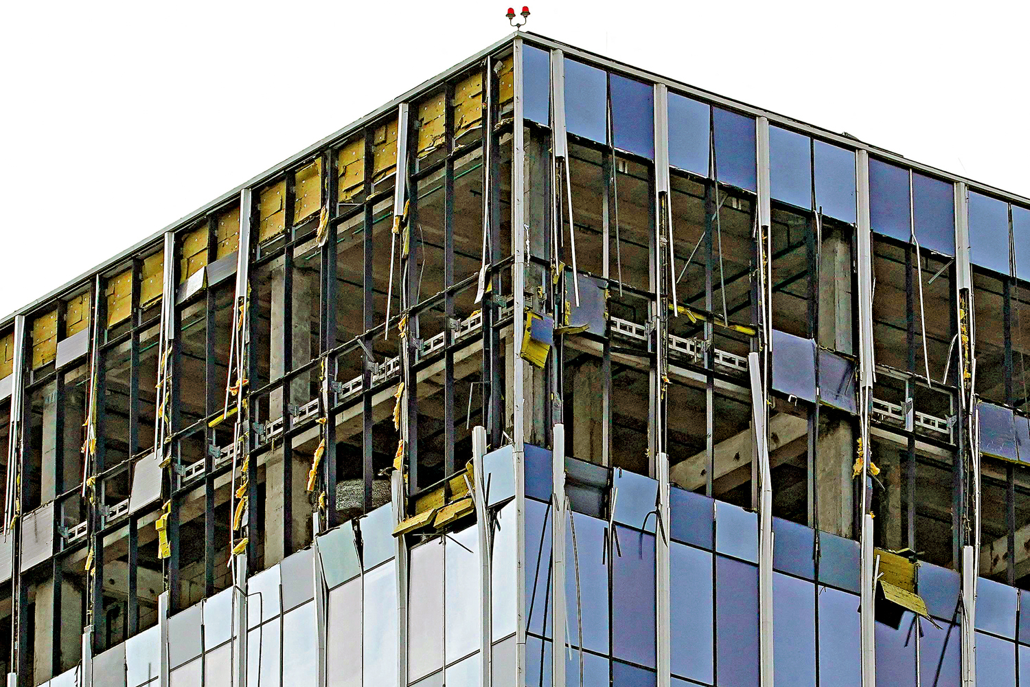圖:莫斯科利哈喬夫大街上一處商業中心遭無人機襲擊。\法新社
