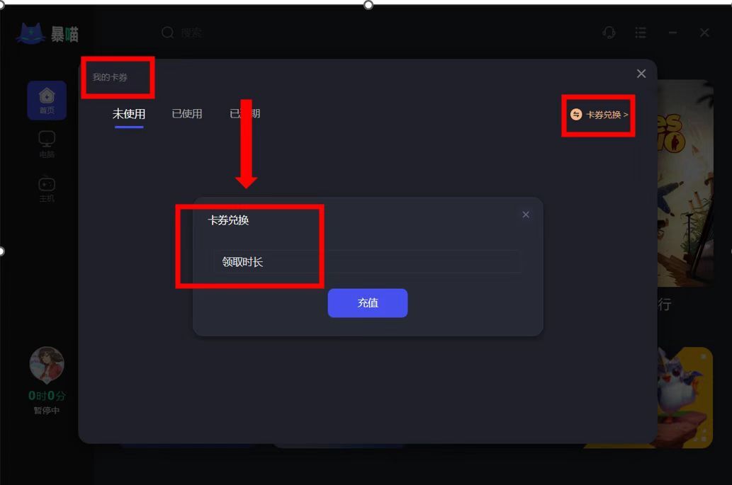 目前,在暴喵加 速界面点我的卡卷,在卡卷兑换,输 入 “领取时长”就可以有三天的加 速时间喔。记得安装时选择繁体中文,安装完成后就可以开始国际服注册了。