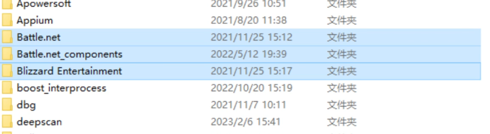 点击确定打开,找到关于暴雪战网的文件,全部删除干净。