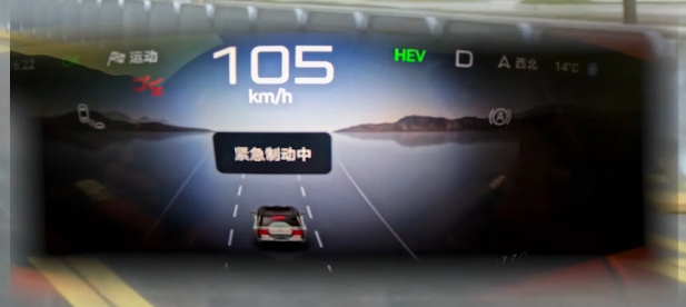 在110km/h跟随前车这段画面,已经满足让人很容易掉以轻心出现危险的条件了,相对静止的情况下跟车了一路,没有亮起车尾灯突然变道,这时脑子里出现的第一反应并不是减速或其他。而在前车变道后才能够看到的障碍物则成了危险的化身,这时候还能够留给踩刹车的时间并不剩下多少,仰望U8的AEB在这里再次替代人工表现亮眼!