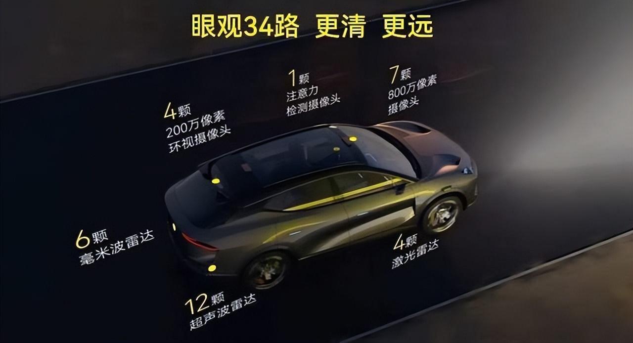 路特斯的智驾拥有成熟研发体系,能够结合真实的场景去分析。硬件方面,ELETRE全车配备了34颗感知元件,包括4颗128线激光雷达、2颗4D毫米波雷达、7颗800万像素摄像头等等,最远探测距离300米,结合五重感知维度,探测行人、车辆、交通标志等等参与道路交通的各种人和物体。