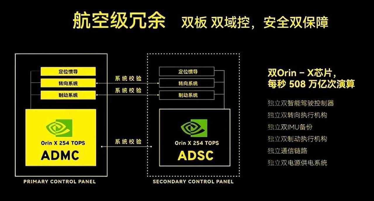 软件层面上,ELETRE配备双智能驾驶控制器、双制动控制单元等等多个系统,双备份的系统实现双安全保障。值得一提的是,ELETRE的双域控制器上各搭载了1颗NVIDIA DRIVE Orin芯片,算力可达508 TOPs。