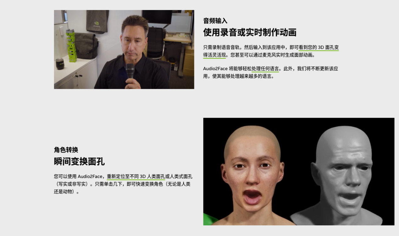 完美世界游戏官方表示,英伟达 Audio2Face 技术“提高了开发效率,呈现了更为真实的智能化游戏体验”,该技术特性如下: