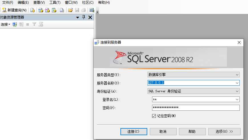点击电脑左下角的开始-所有程序-Microsoft SQL Server 2008 R2-SQL Server Management Studio,弹出的连接服务器框输入登录名和密码登录进入。