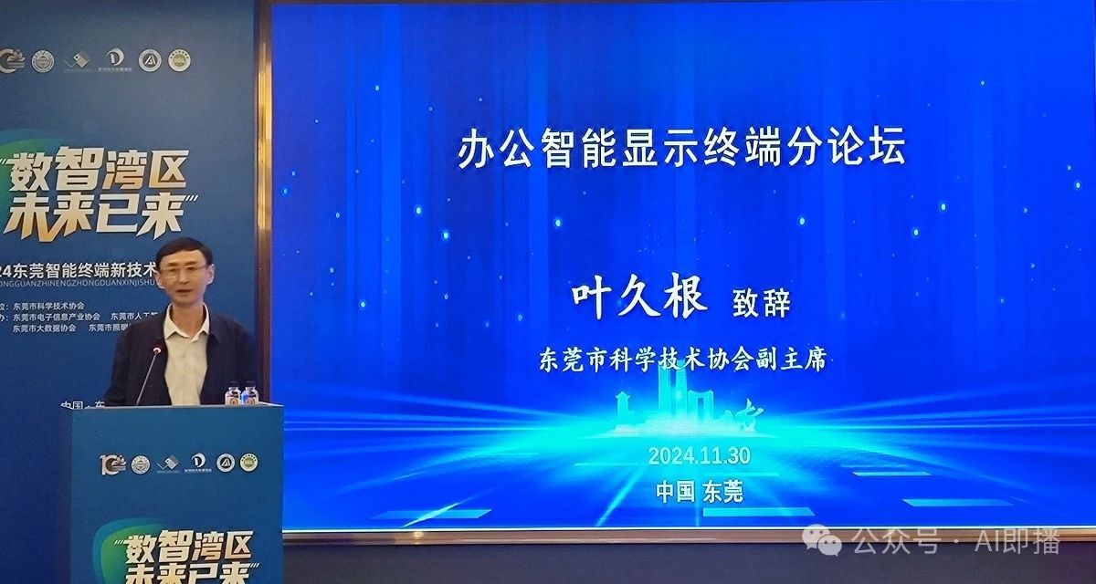 11月 30日,“2024东莞智能终端新技术推广会”上聚焦办公智能显示终端产业发展的专题活动在第三分会场拉开帷幕。随着人工智能技术的飞速发展,东莞积极把握机遇,以“AI 驱动,智显未来”为理念,大力推动办公智能显示终端产业迈向高质量发展新征程。