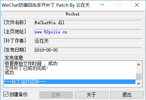 今天,还带来微信防撤销&多开补丁。此补丁由吾爱破解论坛版主云在天制作。安全、稳定和兼容性极好。只需双击图标即可打开更多,不需要其他辅助软件,支持防退,没有任何干扰提示信息。