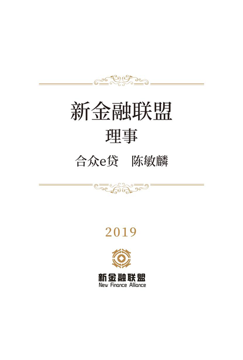 近日,合众e贷正式当选为新金融联盟理事单位,合众e贷CEO陈敏麟被任命为新金融联盟理事,这体现了合众e贷过硬的实力与突出的行业影响力。