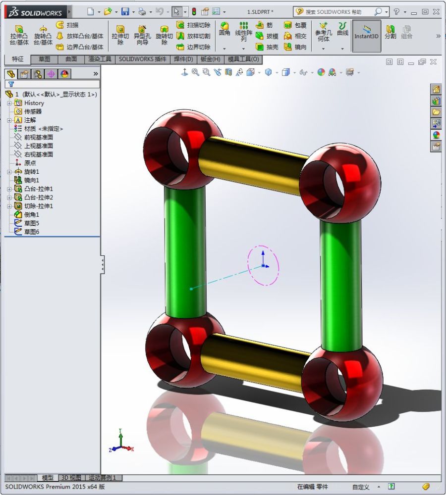 8.再插入一个零件二,换个颜色,两个圆重合配合。