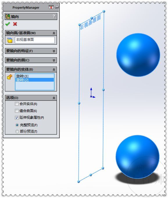 5.在右视面画两个圆,直径:20 ,两侧对称拉伸:100 。