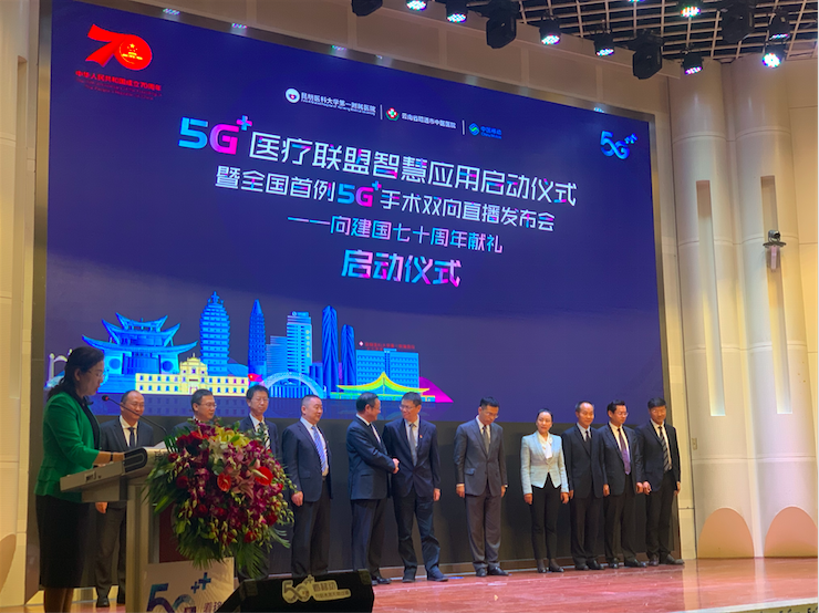 为加快5G+医疗项目落地,9月27日,“5G+医疗联盟智慧应用启动仪式暨全省首例5G+手术双向直播发布会”在昆医附一院举行,活动在中国移动高带宽、低时延的5G网络环境下实现高清手术视频直播及远程指导。