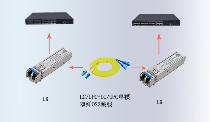2. 1.25G SFP LX光模块工作波长为1310nm,采用LC双工接口,与单模双纤光纤跳线OS2搭配使用时输距离可达10KM。