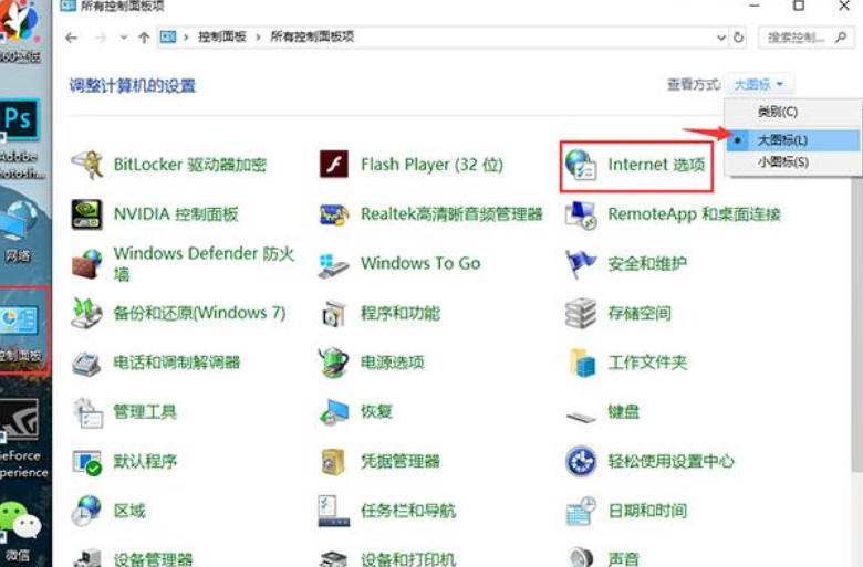 2、按下【Win+R】调出运行窗口,在里面输入【control.exe】,打开控制面板,找到右上方的【查看方式】,点击选择【大图标】,接下来我们在下方找到【Internet选项】点击【隐私】,勾选【启用弹出窗口阻止程序】,阻止级别设置为【中:阻止大多数自动弹出窗口】。