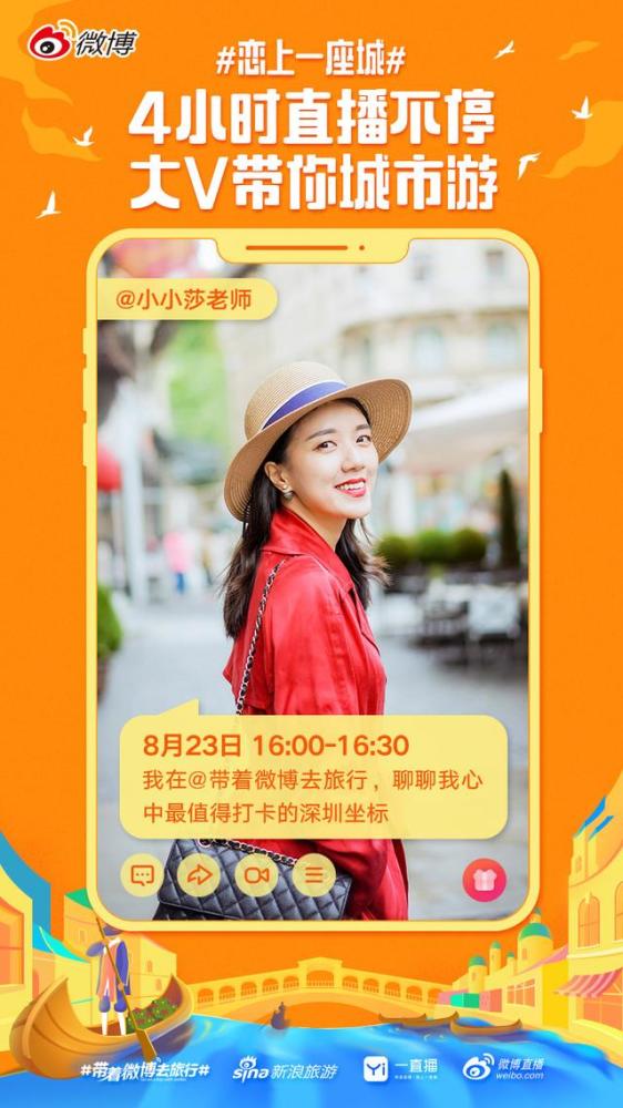 在以往传统的玩法的基础上,今年的#带着微博去旅行#与一直播全新打造了轮麦房进行"城市直播接力"。在#恋上一座城#、#吃遍全世界#这两个主题周,不同城市的大V将进行不间断3小时直播,每位博主将采用直播的形式分享爱上一座城市或迷上一种味道的缘由,将"最潮"的全景拍摄和直播深度融合,内容涉略美食美酒、城市风光、展览演出等不同领域,全方位记录旅行中更具趣味、视角更丰富的美景。用户可以每日发布贴纸海报,参与活动尽情与大V互动,集获城市卡片召唤旅行大奖,且还可以通过转发,评论,点赞话题等在微博获得抽取红包大奖的机会。