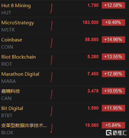 格隆汇6月21日丨美股区块链概念股走强,Coinbase涨近15%,Hut 8 Mining、Riot Blockchain、Marathon Digital、嘉楠科技、Bit Digital涨超10%,区块链ETF BLOK涨5.84%。比特币在经历了周末的抛售后重回21000美元上方,以太坊涨回升至1160美元。
