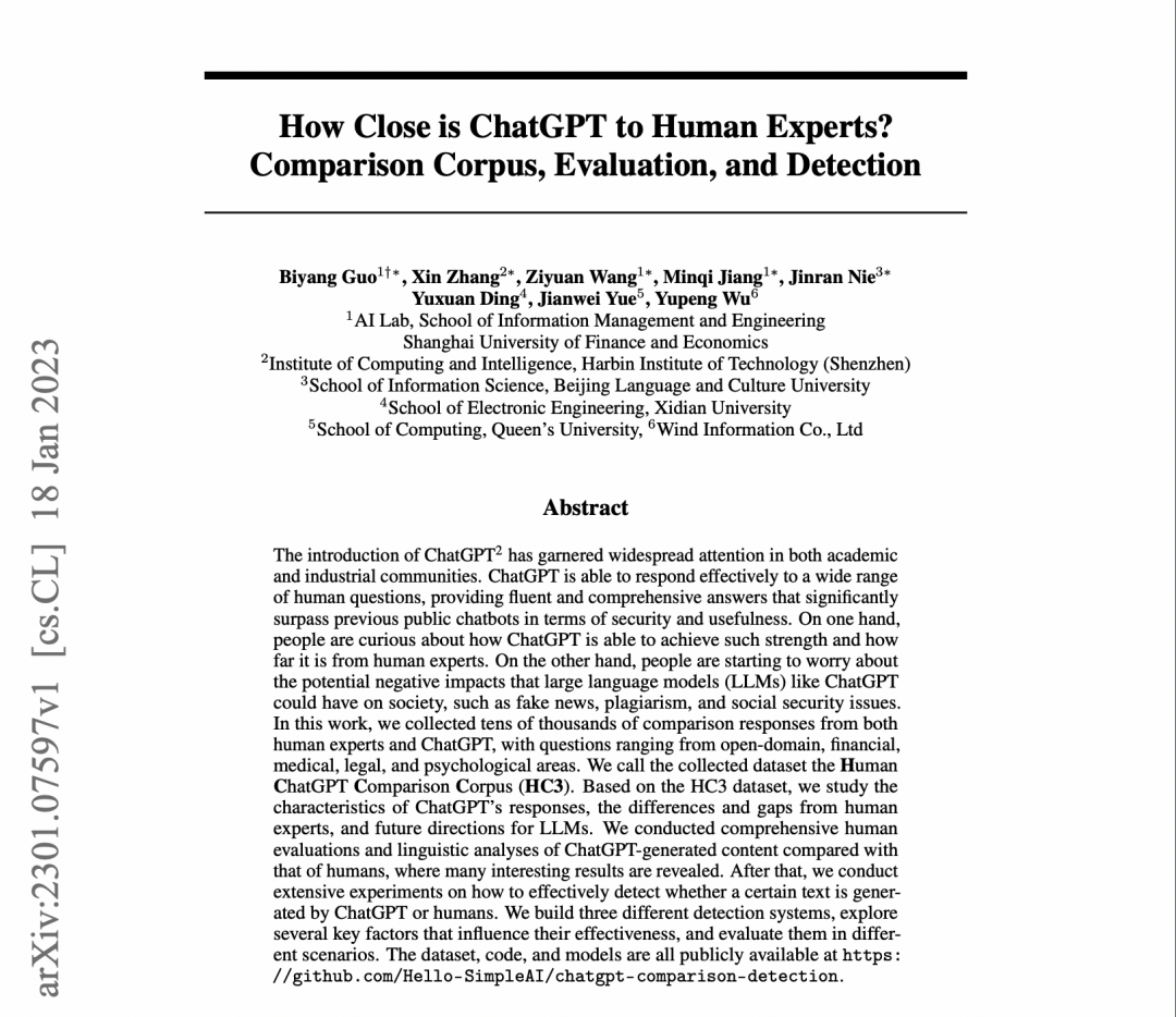 我们提出了首个「人类-ChatGPT 问答对比语料集」,也是最早开发ChatGPT检测器的团队,过去40天我们熬了很多夜,除了艰难的数据收集过程,还做了大量人工测评(图灵测试,有用性测试等)、语言学分析以及各种类型的检测器的开发。作为一个纯纯的中国学生团队,甚至多数人最初都素不相识,我们一开始是觉得难以完成最初的设想的,但经过40天的奋战,我们最初想做的基本都做到了,真心为我们团队感到自豪!感谢并肩作战的好兄弟们!