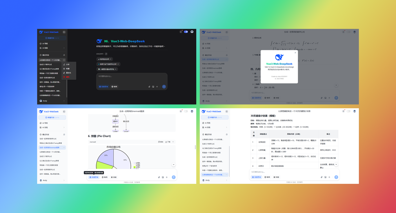 喜迎2026原创新作vite7.2+vue3.5+deepseek-v3.2从0-1纯手搓流式输出ai会话模板。