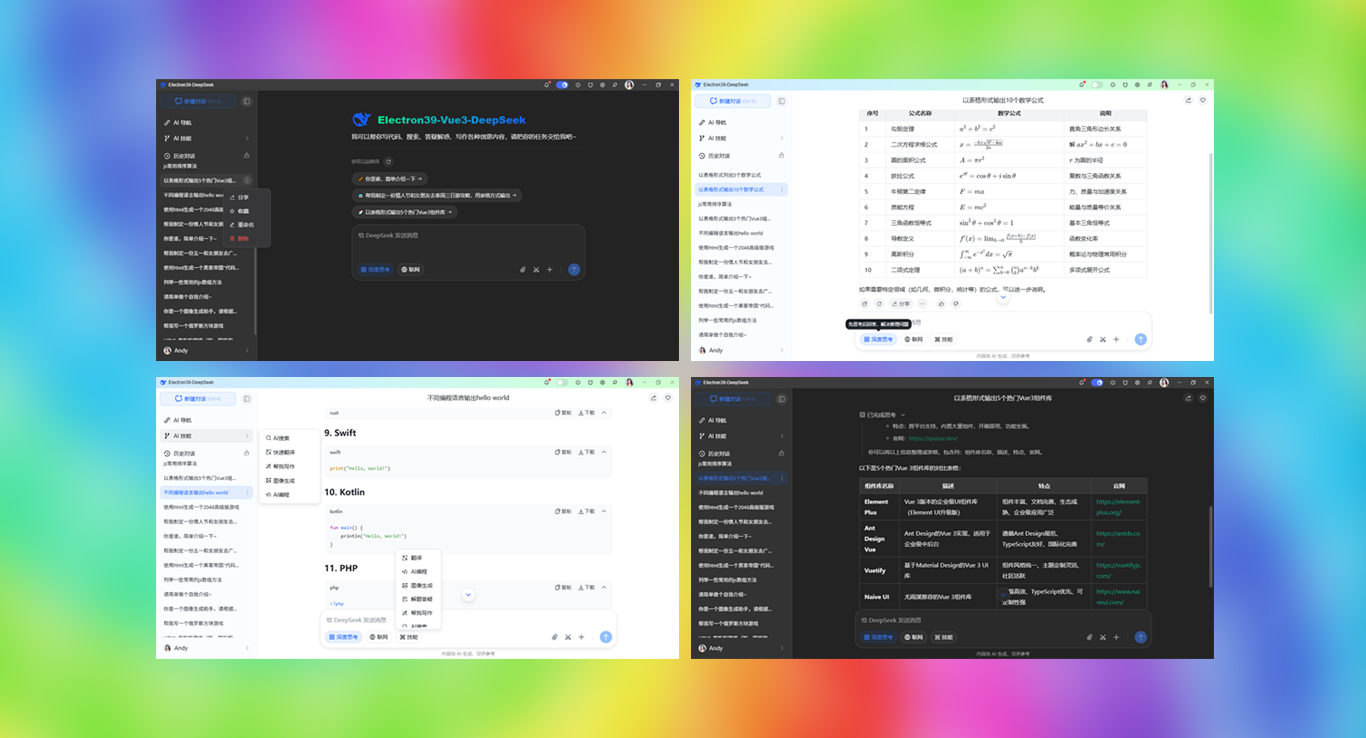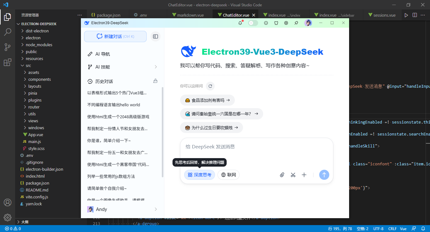 2026年最新跨平台AI实战 - Electron39.2+Vue3+DeepSeek-V3.2+Arco搭建桌面端ai模板。