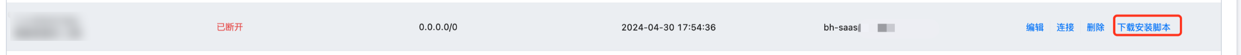 网络域配置好后,处于断开状态。需要下载安装脚本,部署到目标网络域内一台或多台可访问到运维安全中心(堡垒机)公网 IP 的服务器上。