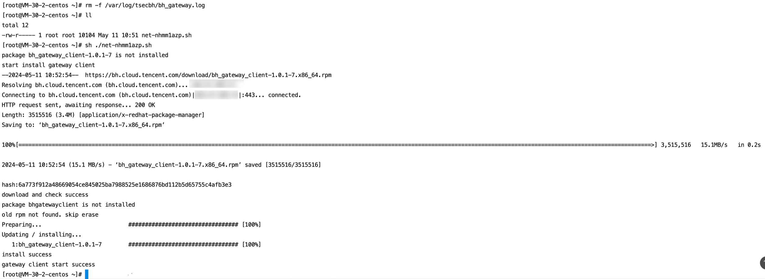 2. 上传安装脚本到服务器上后,执行脚本。