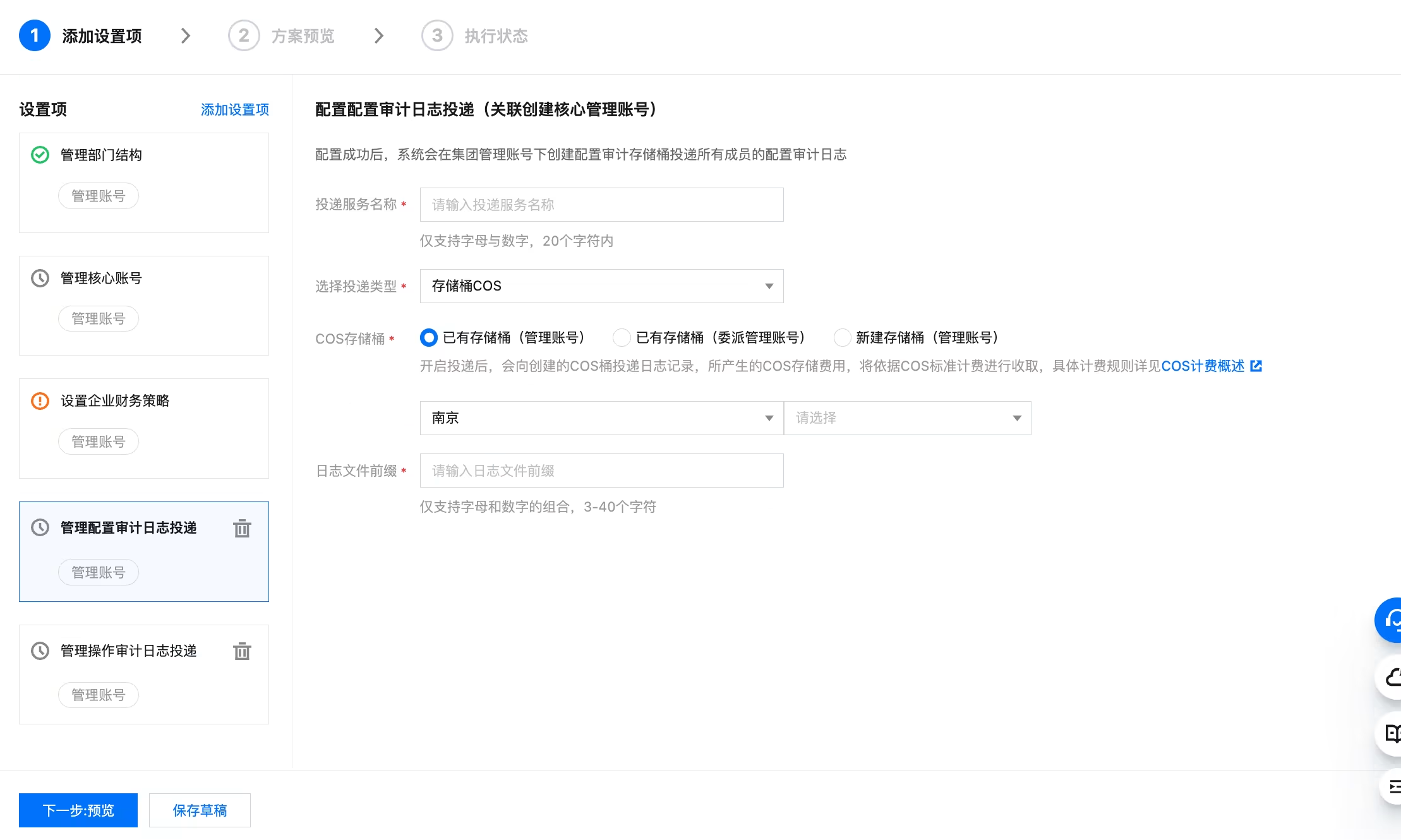 步骤五:管理配置审计日志投递