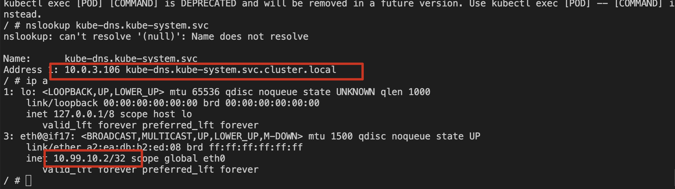 2. 使用 nslookup 命令解析 kube-dns 的 svc。如下图所示: