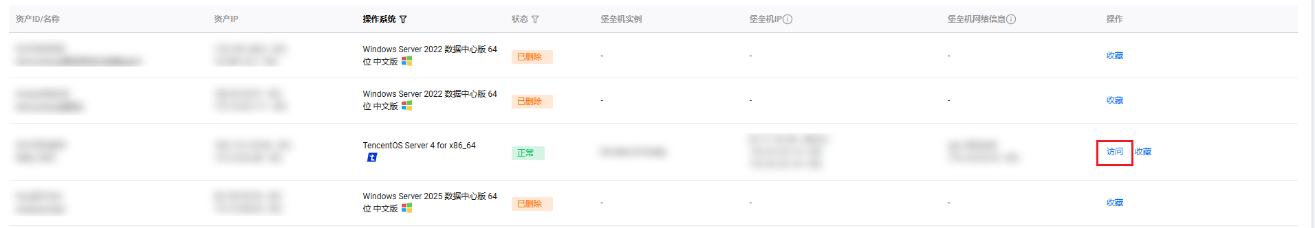 3. 在资产列表页面,单击对应主机右侧的访问。