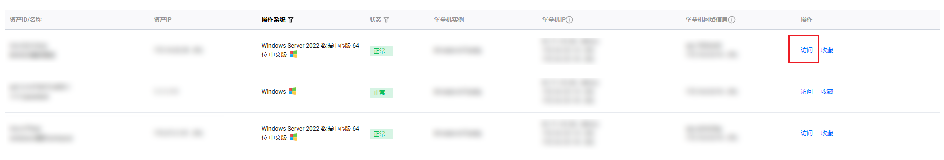 3. 在主机资产列表页面,单击对应主机右侧的访问。