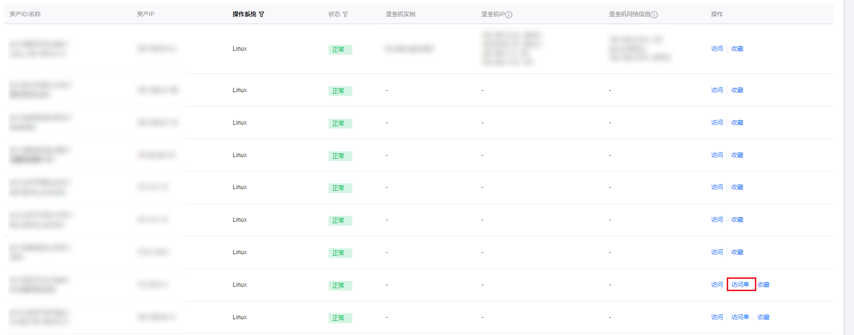 3. 在主机列表页面,单击对应主机右侧的访问串,弹出访问串对话框。