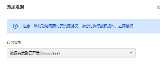 3.1 行为类型选择“数据转发到云开发(CloudBase)”。