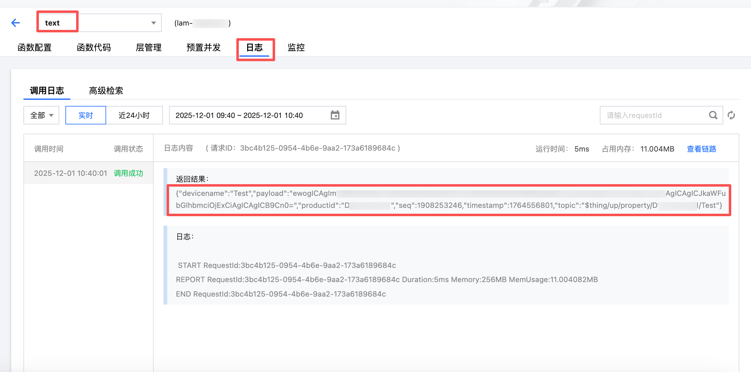 7. 回到云开发控制台进入云函数页面日志模块找到转发的日志。