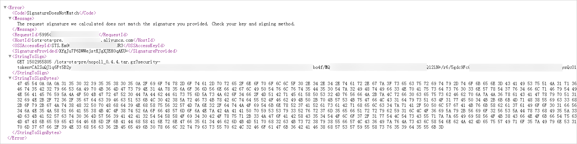 设备端获取到升级包的 URL 后,进行下载升级包时,若报错提示拒绝访问,是由于升级包 URL 过期导致,URL 有效期为24小时。