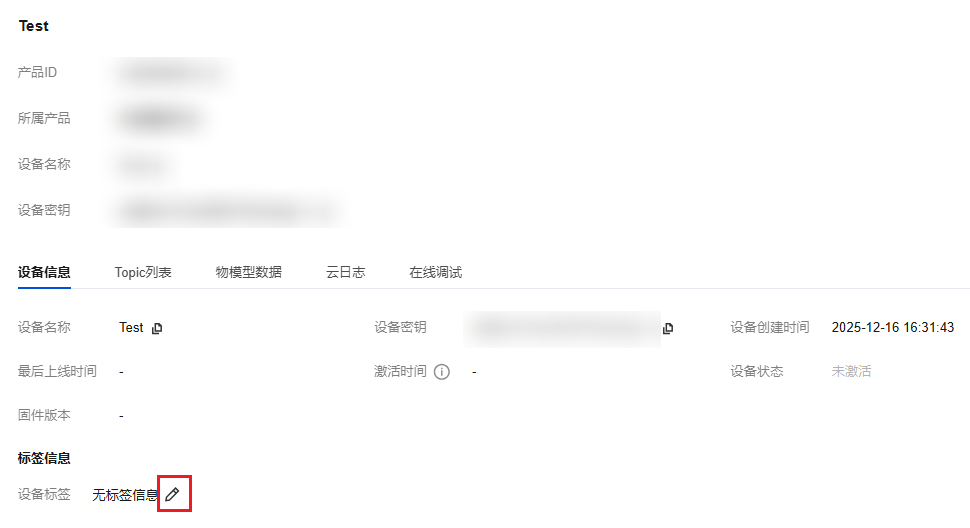 2. 进入编辑页面后即可为当前设备添加/编辑/删除标签。