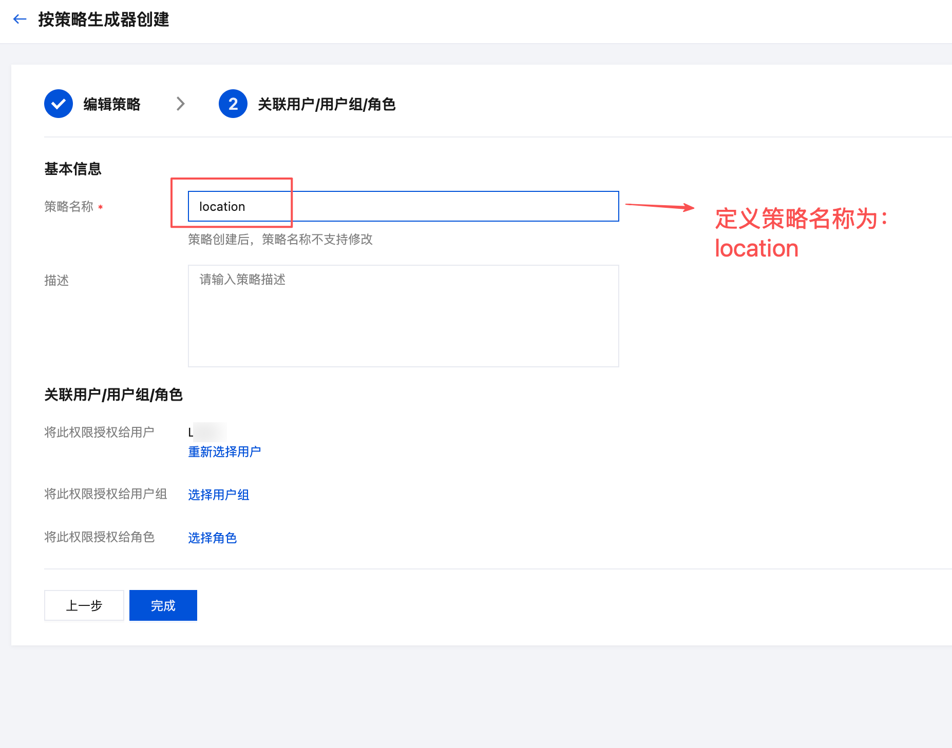 2. 策略方式选择“按策略生成器创建”。