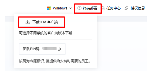1. 登录 iOA 零信任管理平台控制台,单击右上角的终端部署,下载 Windows 版安装包(安装包为 exe 格式)并将安装包提供给 iOA 技术支持。