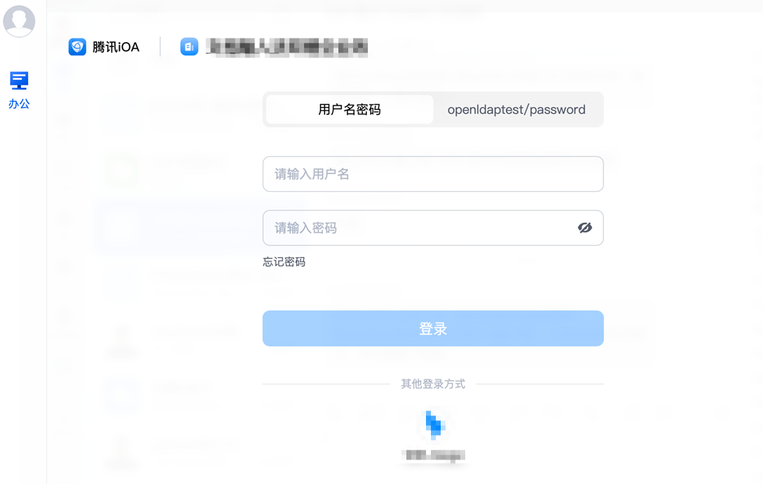 8. 当认证策略的主认证方式或挑战认证方式等认证源配置为腾讯统一身份时,可使用腾讯统一身份的账号密码作为主认证方式或挑战认证方式登录 iOA 。