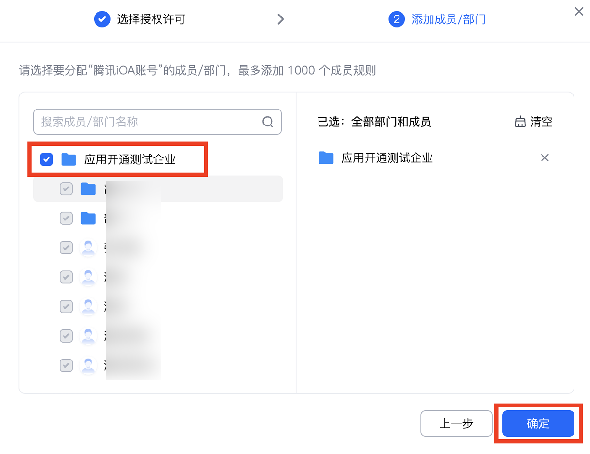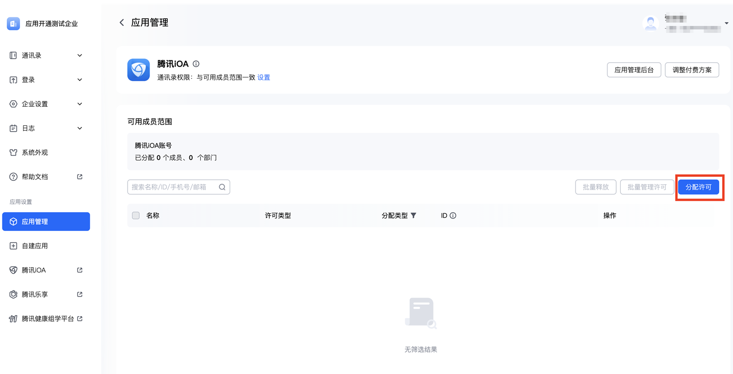 3. 在分配应用许可页面,勾选腾讯 iOA 并单击确定保存。