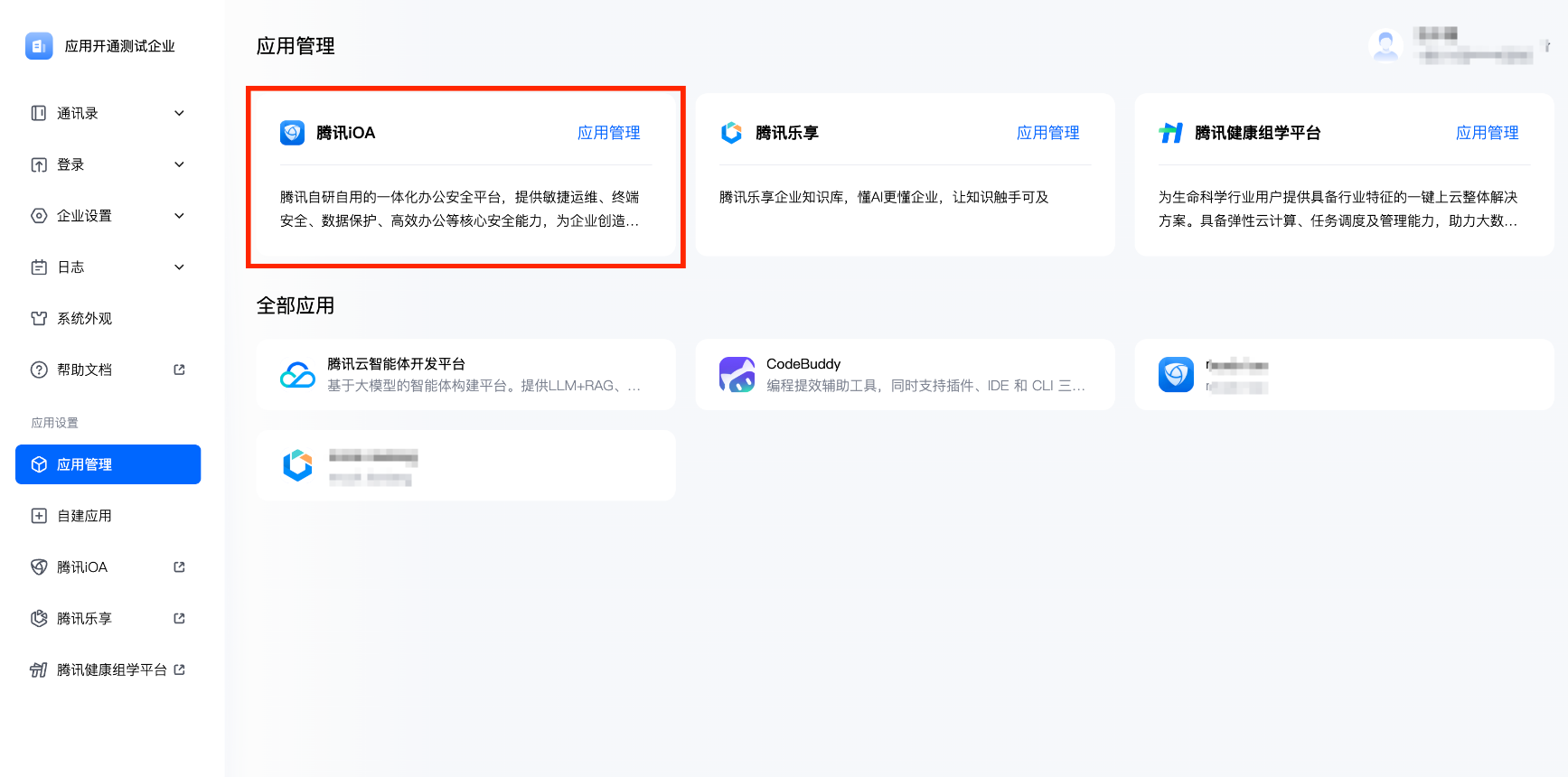 1. 前往应用管理单击腾讯 iOA。